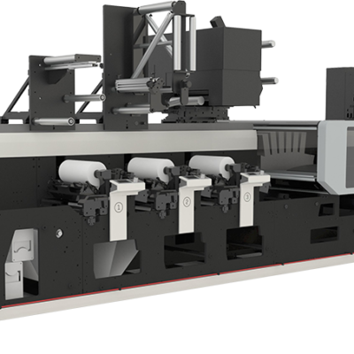 The Domino digital unit uses Kyocera printheads to print at a resolution of 600×600 dpi, with up to six colours and opaque white. A 340mm web width on the Domino printer and a wider 430mm web width on the MPS press allows converters to run more labels when running in pure flexo mode and at a higher speed.